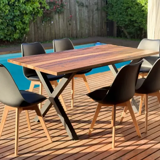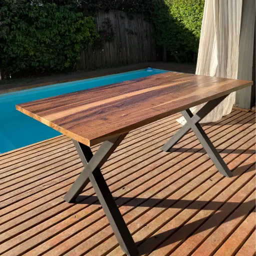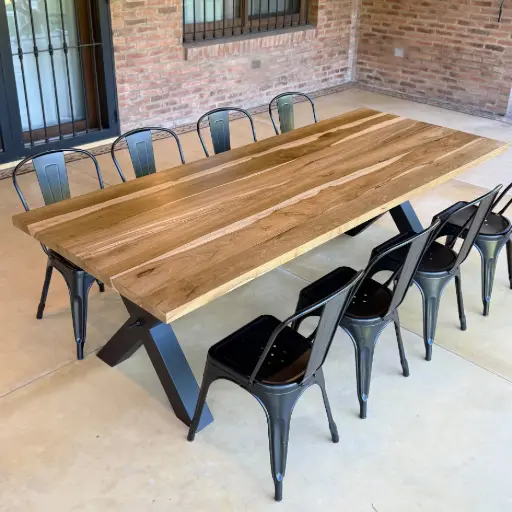 Mesa Eucalipto patas X 60x60 hierro y madera