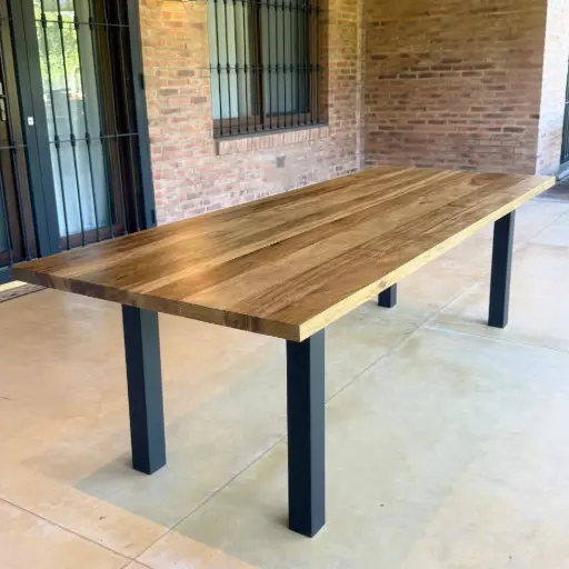 Mesa Eucalipto patas X 60x60 hierro y madera